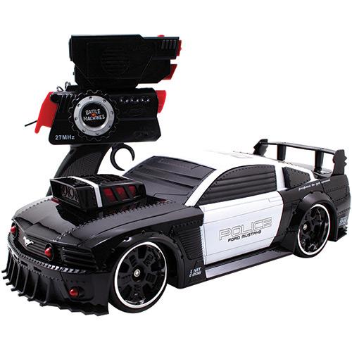 Os garotos mais apaixonados por carros vão ficar encantados com o Carrinho de Controle Remoto Battle Machines Mustang Police da Candide.